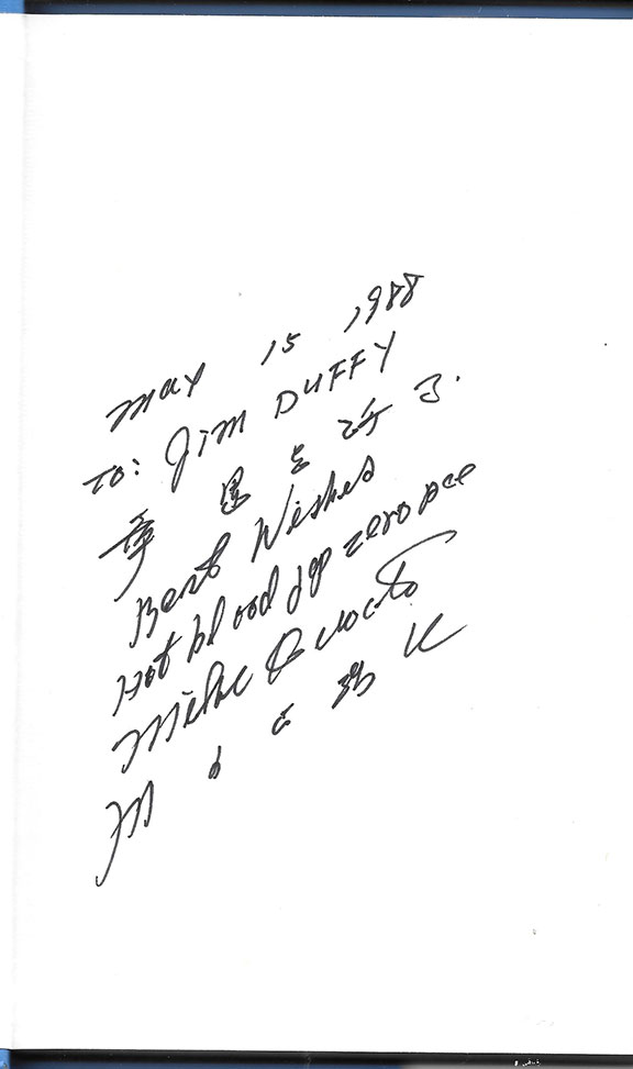 KAWATO, Masajiro (1925-2008). Fighter pilot with the Imperial Japanese Navy. He flew 35 combat missions. Great Japanese WWII Ace. Credited with 19 victories. Shot down Col. Gregory “Pappy” Boyington which was Kawato’s 13th victory. Kawato was shot down 5 times. The last time he was shot down he landed in the sea and was captured and delivered to an Australian POW camp. Kawato was declared dead by the Japanese military and a funeral was held. Three and one half years later he returned home and visited the altar where his funeral services were held. Tom Bradley, Mayor of Los Angeles awarded Kawato a special commendation for courageously spanning the Pacific Ocean in a solo flight from Tokyo to Crescent City, California. The flight covered more than 5,000 miles in thirty-five hours and 15 minutes. This flight established a goodwill gesture between Japan and the United States. Kawato’s book BYE BYE BLACK SHEEP, Printing Dynamics, Inc. 1978, Seventh printing. 172 pages with illustrations. A very lengthy and important presentation inscription, signed in both English and Japanese and dated. “May 15 1988 To: Jim Duffy (adding a line in Japanese) Best Wishes, Hot blood Jap Zero Ace Mike Kawato, signed once again in Japanese. These books have sold as high as $2,700 on ebay. In very fine condition with dust jacket...........$150.00