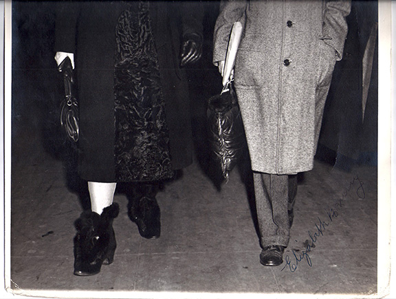 KENNY, Sister Elizabeth (1880-1952). Australian nurse, promoted a controversial new approach to the treatment of poliomyelitis. Kenny’s principals of muscle rehabilitation became the foundation of physical therapy. In 1911 she opened a cottage hospital treating confirmed cases of infantile paralysis (polio). During WW1 she cared for patients on troop ships that ran from Australia to England. Kenny was based in America for 11 years. She lunched with President Franklin D. Roosevelt discussing his treatment in Warm Springs, Georgia. Kenny was the only woman, during the first 10 years of the Most Admired Woman, to replace Eleanor Roosevelt in the #1 spot. Her former patients include Alan Alda and Dinah Shore. Rare oversized photograph, B&W, appx. 11”x14” full length of Sister Elizabeth Kenny walking with a gentleman. Signed, “Elizabeth Kenny.” Bottom corners lightly rounded otherwise in very good condition....... $375.00