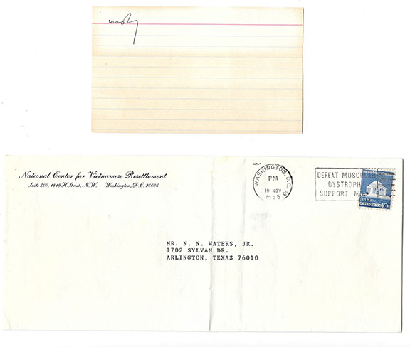 KY, Nguyen Cao (1930-2011). Prime Minister of Republic of Viet Nam (1965-67). Vice President of the Republic of Viet Nam ((1967-1971). Chief of the Viet Nam Air Force during the 1960’s.  His hero was Adolf Hitler. Ky was known as Buddha’s child.  His ink signature on a lined 3”x5” card. With original envelope