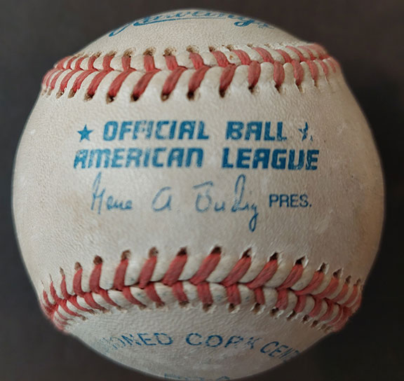 DALI LAMA XIV (1935- ) (Tenzin Gyatso). Tibetan religious leader. In 1939 he was recognized as the 14th Dalai Lama in a public declaration. During the 1959 Tibetan uprising he fled to India where he currently lives as a refugee. He is the recipient of the Nobel Peace Prize (1989). In 1996 the Chinese Communist Party reinstated the total prohibition of any photograph of the 14th Dalai Lama. Authorities in Tibet have banned photographs in public places and monasteries. Plain clothes policemen went to hotels and restaurants and ordered all pictures of the Dalai Lama to be removed. Official American League Baseball, Gene A. Budig, President. Apparently the Dalai Lama had difficulty signing the round baseball as do any celebrities. He started to sign, using a ball point pen on the sweet spot. He switched positions to a side panel where he did the best to sign his full name. Baseball show some scuffing. Comes with the original mailing envelope from India which bears 60 Indian Stamps depicting Indira Gandhi Dalai Lama’s rubber stamped return address is also on the envelope. There are no records of sales of baseballs signed by the Dalai Lama. The Dalai Lama refuses to sign a baseball in person so this could be easily one of a kind.............................$595.00