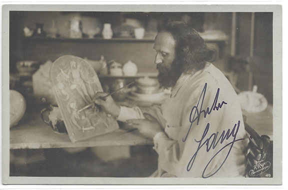 LANG, Anton (1875-1938). German actor in the Passion Play who portrayed the role of Jesus Christ in 1900, 1910 and 1922.  Wonderful photo postcard of Lang painting a portrait of Jesus. Very boldly signed. In very fine condition.....