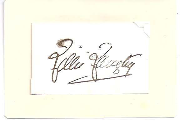 LANGTRY, Lillie (1852-1929). Popular actress, known as The Jersey Lillie. Large bold signature on a card. Light blotting to the top of the “L” in Lillie otherwise a lovely example.............................. $275.00