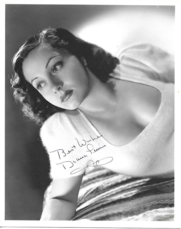 LEWIS, Diana (1919-1997). American film actress. She began her film career in 1934. She retired in 1943 after marrying William Powell. She appeared in 19 films. Photograph, B&W, bust pose looking quite serious. Signed: “Best Wishes, Diana Lewis.” In fine condition..........$95.00 |