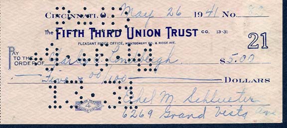 First Committee, dated May 26, 1941, payable to Mr. Charles Lindbergh