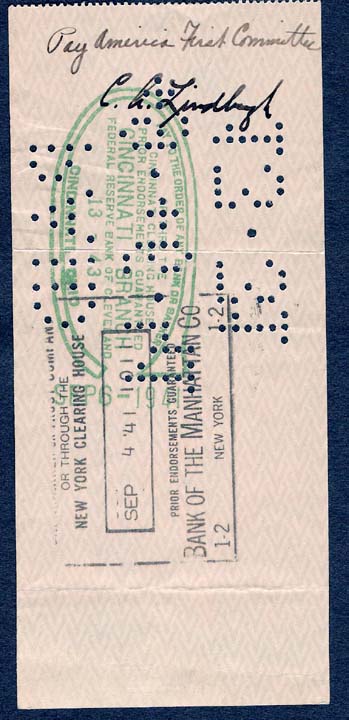 and endorsed to the 'America First Committee.' Signed: "C.A.