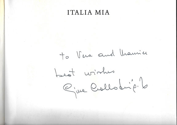 LOLLOBRIGIDA, Gina (1927-2003) High profile Italian actress in the 50’s and 60’s. International sex symbol. Her first book “Italia Mia” (1973) Printed in Italy.