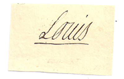 LOUIS XV. (1710-1774). French King. Came to the throne at the age of five. The French hated Louis for his costly and disastrous wars and scandals. His reign did much to bring on the French Revolution. Choice signature with ample margins for matting and framing.....................................$750.00