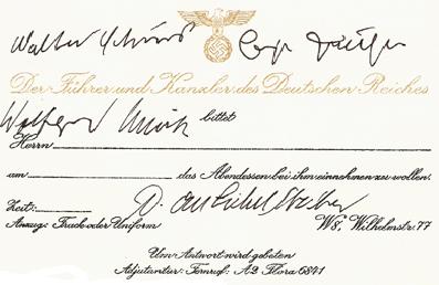 of the Deutchen Reichs." Signed by four aces, clockwise