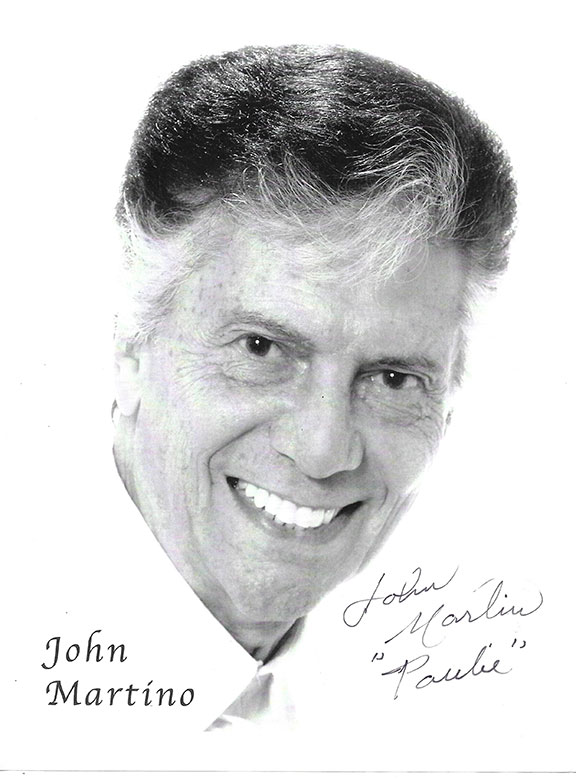 MARTINO, John (1937- ) American singer and actor. In real life, John Gotti’s favorite actor was John Martino. He played the bodyguard in the 1972 film “Godfather” who was supposed to protect Don Corleone. After they shot him in the car, one of the most famous lines in the movie is said “Leave the gun and take the cannoli’s!” The part was originally going to be played by Robert DeNiro. This precious B&W portrait measures 8.5”x11” and is a head and shoulders pose. Signed “John Martino, Pauli.” In person signature, only five of these were signed as a favor for his neighbor. In VG condition..................................$65.00