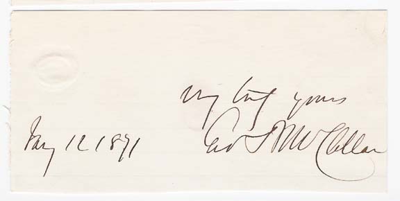 slip of lined paper. Reads: "Very Truly yours Geo McClellan