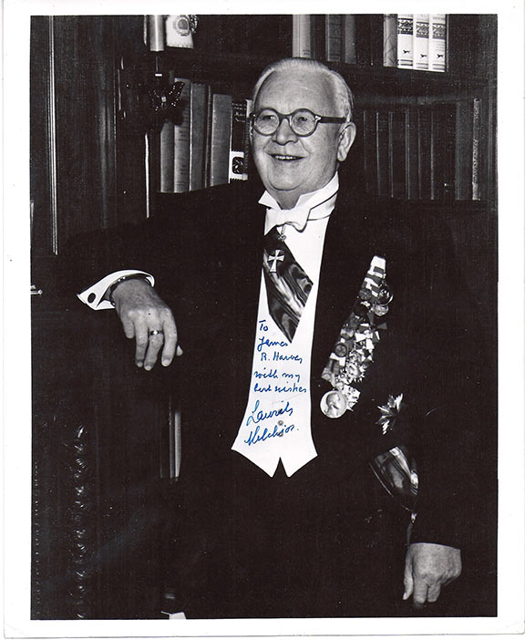 MELCHOIR, Lauritz (1890-1973). Danish operatic tenor. His debut was in Copenhagen as a Baritone (1913) and as a tenor (1918). Photograph, 8”x10”, B&W, half length pose in formal dress wearing many of his decorations. Fine presentation inscription along with a three word sentiment, signed in full. Excellent contrast and in fine condition.....................................$195.00![]() |