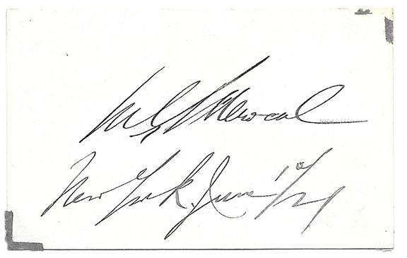 MENOCAL, Mario G. (1866-1941). A leader in the fight for liberation from Spain. Major General in the Army during Cuba’s War. Veteran of the war of Independence. Third President of Cuba (May 1913-May 1921). The Presidential Palace was inaugurated during his administration. Choice signature on a large card, dated in his hand: New York, June 1st/21.” Not a common signature...........................$225.00