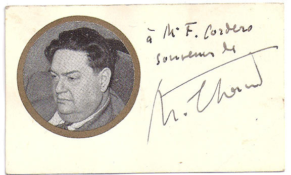 MILHAUD, Darius (1892-1974). French composer of the polytonal school. Member of the group known as Les Six. Choice inscription and sentiment in French boldly signed to the right of a portrait affixed to the card.....................................$175.00![]() |
