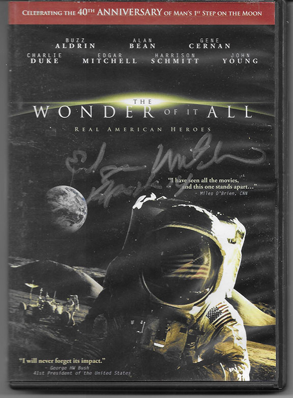 MITCHELL, Edgar (1930-2016). American astronaut, Lunar Module Pilot for Apollo 14, sixth person to walk on the moon. Scarce DVD Celebrating the 40th Anniversary of Man’s 1st Step On The Moon. The Wonder Of It All. In color, 2009. Signed on the cover in silver ink: “Edgar Mitchell Apollo 14.” In fine condition.....................$150.00![]() |