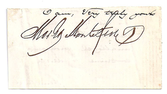 MONTEFIORE, Sir Moses Haim (1784-1885). British Jewish philanthropist; established the British Stock Exchange. Founded a hospital and girl’s school in Jerusalem in 1855. Scarce closing and full signature cut from an autograph letter. In excellent condition........