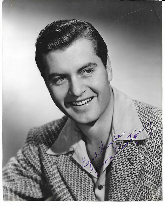 MONTGOMERY, George (1916-2000). American actor, painter, producer, writer and stunt man. Best remembered as an actor in western films. Handsome, vintage 20th Century Fox borderless photograph, 7.5”x9.25” head and shoulders pose, full face, looking directly into the camera and smiling. Signed with a two word sentiment: Best wishes George Montgomery.” In fine condition.......$47.50![]() |