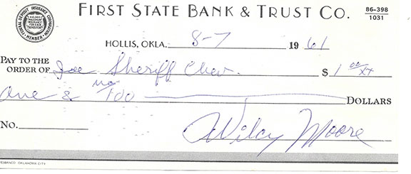 MOORE, Wilcy (1897-1963). American professional baseball right-handed pitcher playing 6 seasons with the New York Yankees, Murderers Row and the Boston Red Sox. He led the A.L. in ERA as a rookie in 1927 while playing for the Yankees. His personal check, accomplished in his hand, dated 8-7-61 made payable to Joe Sheriff Chev. for $1.00. Signed and in very fine condition...........$77.50 |