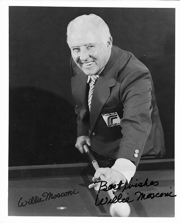 MOSCONI, Willie (1913-1993) World champion billiard player. Called the best billiard player of all time. Photograph of Mosconi, smiling and about to hit a cue ball. Boldly signed along with a two-word sentiment. In excellent condition. Rather scarce not inscribed to an individual........................$95.00![]() |