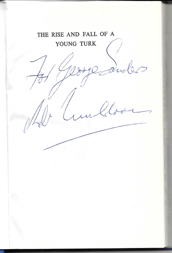 MULDOON, Robert (1921-1992). New Zealand politician serving as the 31st Prime Minister of New Zealand. He held that office from 1975 until 1984 as the leader of the governing National Party. His book: “The Rise and Fall of a Young Turk.” A.H. & A.W. Reed 3rd impression 1974. Two hundred and three pages, illustrated. Inscribed and signed: “To George Sanders, Robe Muldoon.” Near fine copy with the dust jacket............... $75.00