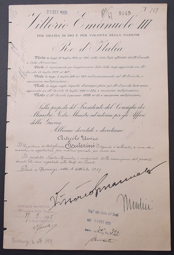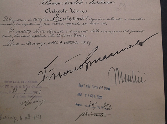 Signed by Benito Mussolini and the King of Italy