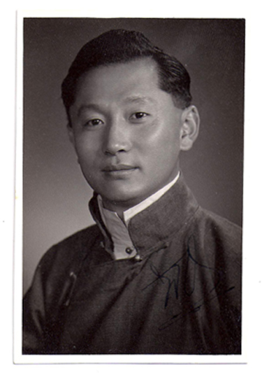 HIS MAJESTY KING PALDEN THONDUP NAMGYAL. (1923-1982). 12TH and last Chogyal (King) of Sikkim. Joined the Union of India. Attractive photograph, black & white, 3.5”x5”, head & shoulders pose looking directly into the camera. Signed on dark portion of his jacket. Circa April 1970. In fine condition..................$195.00
