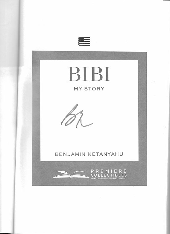 NETANYAHU, Benjamin (1949- ). Israeli politician, ninth Prime Minister of Israel (1996-1999) (2009-2021 (2022- ). His book BIBI My Story Threshold. Editions, 2022, First Edition, 723 pages, illustrations in color. Signed by Netanyahu on a special bookplate of Premier Collectibles together with a laid in Certificate of Authenticity from Premier Collectibles. Book and dust jacket in Mint condition.....................$135.00 ![]() ![]() ![]() |