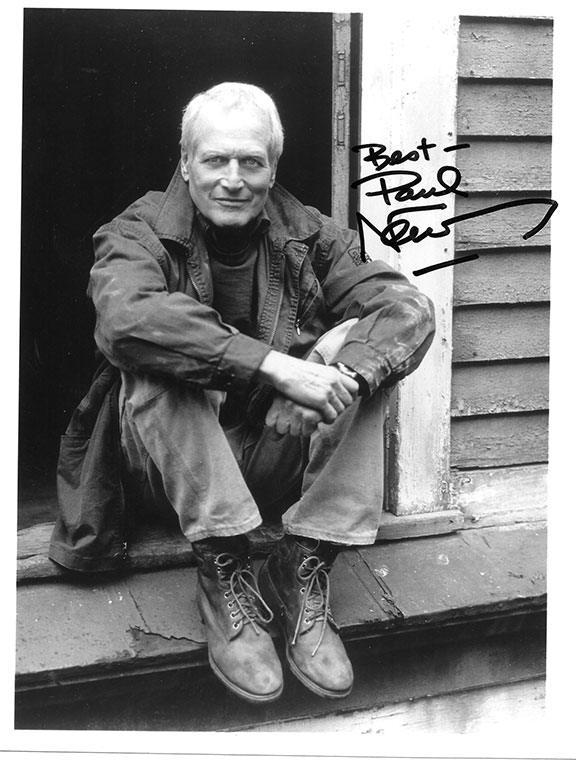 NEWMAN, Paul (1925-2008) American actor, film director, producer, race car driver, Indy car owner, entrepreneur and philanthropist. He has won and was nominated for numerous awards, Won the Academy Award for Best Actor for his performance in the 1986 film ‘The Color of Money.” Fine photograph, 8”x10”, B&W of Newman sitting on a stoop. Boldly signed with excellent contrast: “Best- Paul Newman.” ...............................$295.00 |