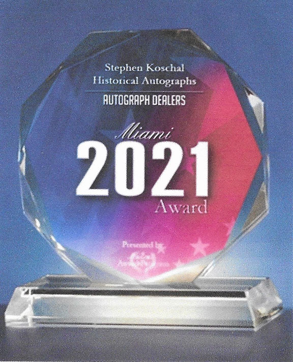 In the meantime, I will continue to promote the hobby of autographs. My next trip will be this May. I will be visiting Helsingborg and Stockholm, Sweden, Copenhagen, Denmark, Tallinn, Estonia, Helsinki, Finland and St. Petersburg, Russia. I especially look forward to meeting some collectors and sellers of autographs in Russia. During the last several years there has been an influx of forgeries and stolen political documents coming from Russia to the United States. Russian authorities are watching dealers inventories on the Internet. I recently spoke for almost an hour at the last AdA meeting in Berlin regarding these issues and replevin see www.autographplanet.com/forum/autograph-club-meetingI have also been working with law enforcement and Homeland Security regarding this subject.