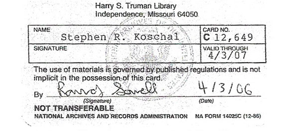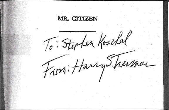 Stephen Koschal, autograph dealer and authenticator has been personal friends with Senator Mark O. Hatfield for over 20 years. Koschal has helped Senator Hatfield build up his autograph and rare book collection.