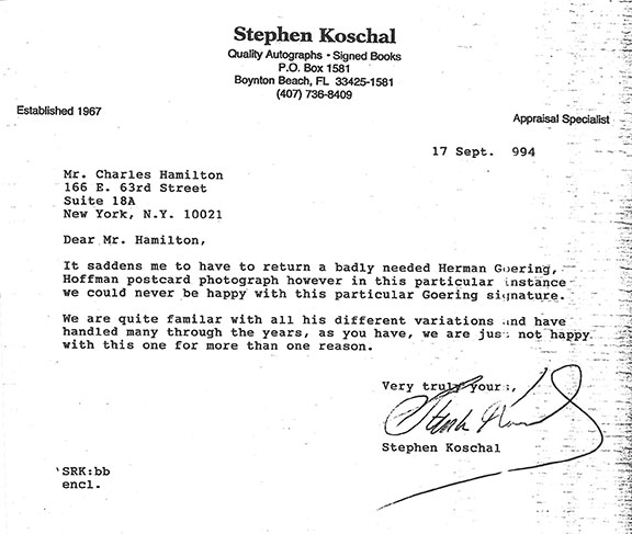 Though we have covered this ground more than once at BookThink, I think it’s a good idea to answer these questions again, at least briefly, in order to provide a context for reviewing autograph dealer Stephen Koschal’s recent book, Certificates of Authenticity for Sale, Exposing the Incompetence in Autography Authentication, the Importance of Choosing the Right Autograph Dealer.