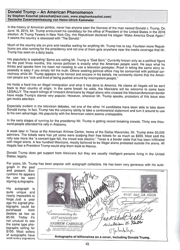 This story was written exclusively for Autographensammler, the quarterly magazine for the International Autograph Club based in Germany.