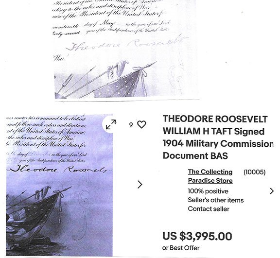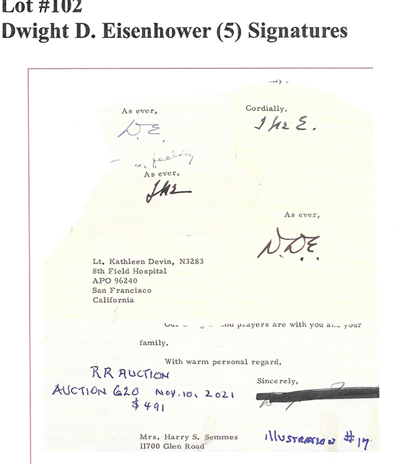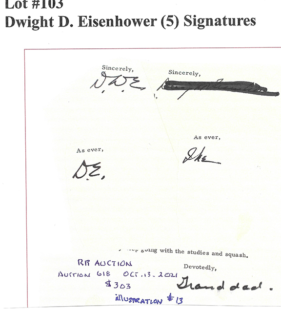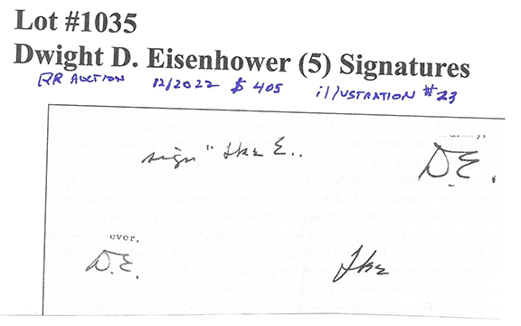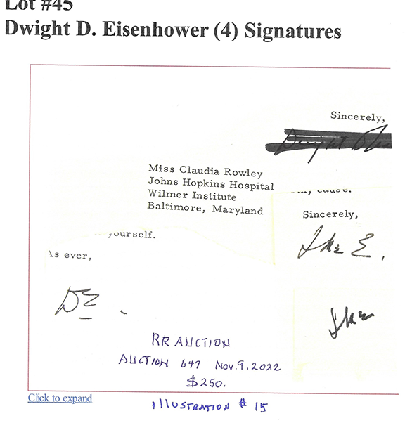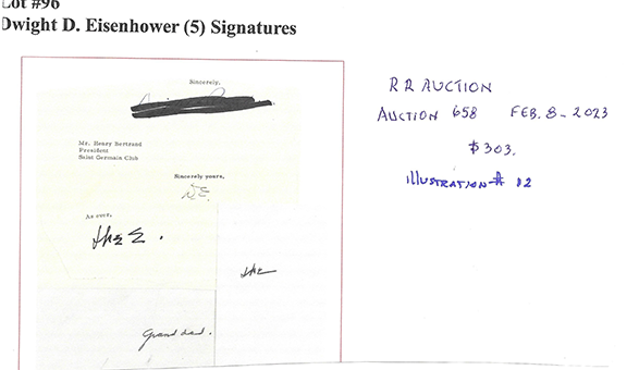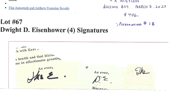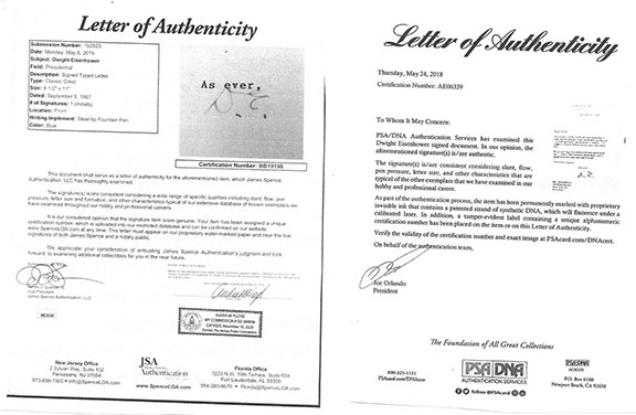To no surprise the first illustration is authenticated as genuine by JSA. This is one of a plethora of autographs certified as genuine that are worthless by those who call themselves autograph authenticators.