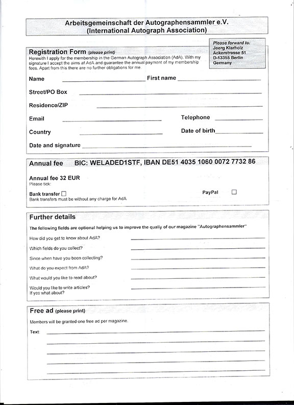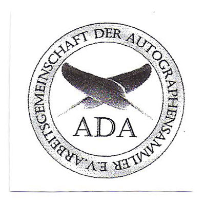 It is most important for all of us, that have good intentions for the hobby, to form mutually beneficial partnerships. A good start is by joining an autograph organization that is alive and well and void of politics and corruption. My recommendation is the wonderful International autograph club called “AdA1986” which is headquartered in Germany. Their membership is worldwide. The question above was “Who can I trust?” can simply be answered by looking for the Ada club logo before doing business with any autograph dealer. You will find each dealer very friendly and knowledgable and honest.