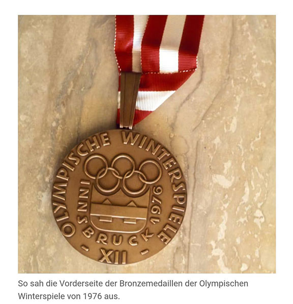 On New Year’s Eve burglars broke into the home of Olympic medalist Christine Errah. She won the Bronze medal in figure skating in 1976 at Innsbruck, Austria. The thieves stole the bronze medal which has left Ms. Errah deeply distressed. Should anyone be contacted to purchase this medal, ask the seller as much information about them and how one can meet them to make the purchase. Immediately turn that information to me Stephen Koschal at skoschal@aol.com so I can to get that to the German/Austrian officials. Medal illustrated below.