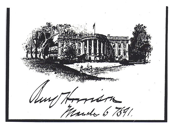 Benjamin Harrison was in office for 48 months. After leaving the Executive Mansion he received numerous requests for his autograph. Now it can be said that Harrison had an unlimited amount of both engraved vignettes that he used for replying to autograph requests. As long as 45 months after leaving office he was still using these vignettes to respond to autograph requests. He may still have been using these cards up to the time of his death on March 13, 1901.