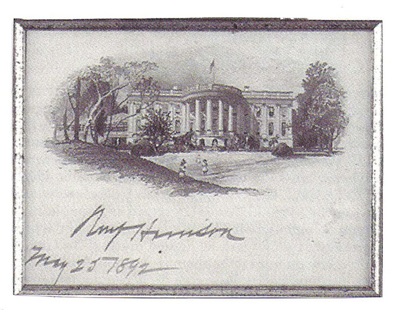 Benjamin Harrison was President of the United States from March 4, 1889 through March 4, 1893. During this time he responded to autograph requests. His favorite medium was to sign the engraved Executive Mansion Vignette. It depicts the view of the south portico of the mansion with children on the lawn. From my research it is believed that Harrison preferred to sign these cards over an Executive Mansion card. Also discovered from research available at this time is that it appears Benjamin Harrison dated his signature on these vignettes when signing as President.