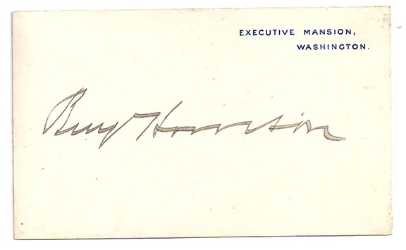 The second scarcest signed card are those of Benjamin Harrison. Only a few examples are known to exist.