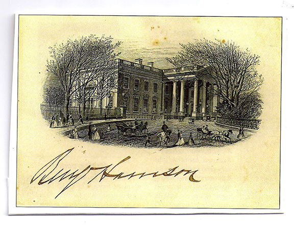 Until now, I have not seen one example of the vignette of the front approach signed and dated by Harrison as President.