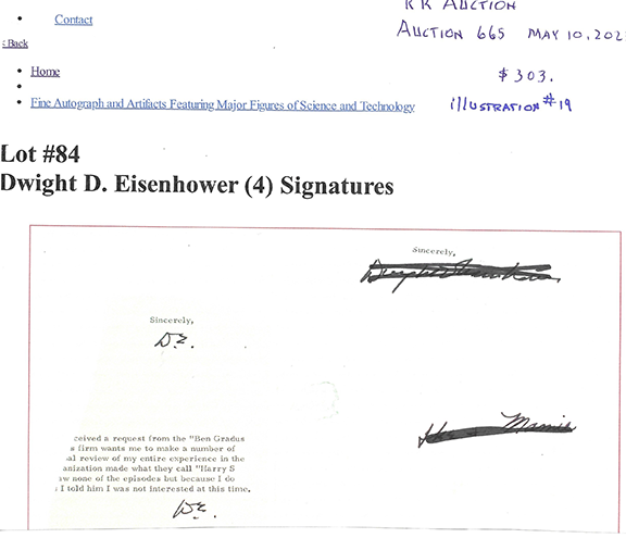 Today, forgers are even more creative as they are aware of the mistakes the forgers made in the past and have corrected some of the faults. Still not relying on a company who claims to authenticate autographs for their “opinion” but true autograph experts can fairly easily spot a bad signature with a little effort.