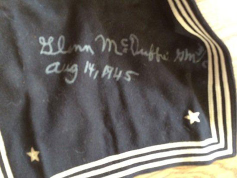 Note: The original blue Navy Jersey that Glenn McDuffie wore when he kissed Edith Shain in New Square, New York City is presently owned by Todd Mueller Autographs. At Mueller’s request Glenn McDuffie signed the Jersey as well.