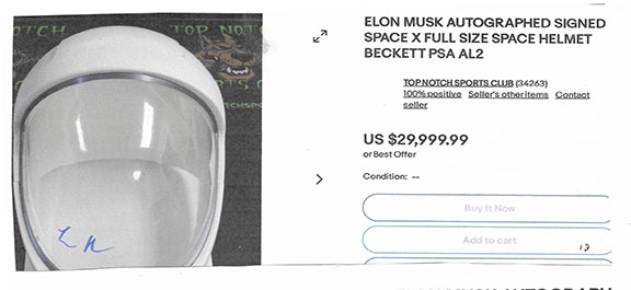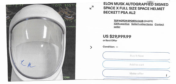 Here’s what he has to say when offering the hair. "Included with the hair is a copy of a sworn testimony from Neil Armstrong’s barber declaring the hair to be genuine." The testimony is a copy! Thousands of copies could be made. And what was used to make the copy? Another copy? Matter of fact, anyone can now be a seller of what they claim to be Neil Armstrong’s hair. They can make more copies from the sellers copy and attach anyone’s hair to it. This item can be offered in unlimited quantity over decades.