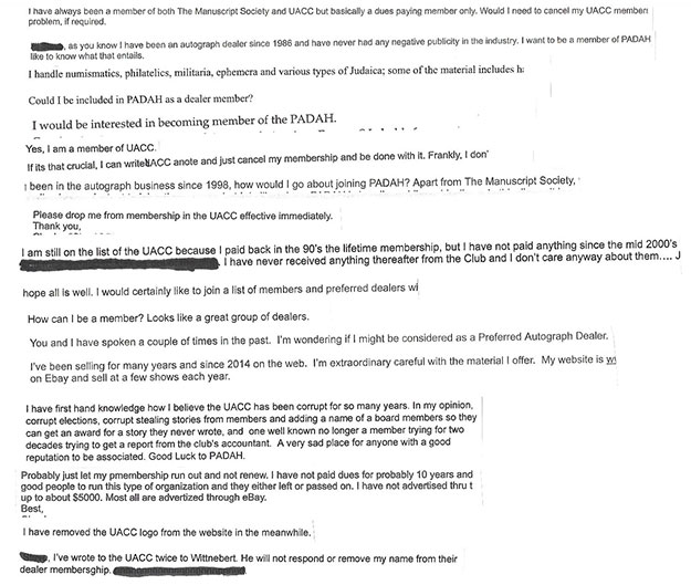 Dealers and some auction houses are getting pressure (strong arm/ mafia type tactics) from some of these authenticating companies by having their genuine autographs fail after the collector makes their purchase. Unless the dealer or auction house pays the authenticating company to authenticate their material in advance of the sale, this unsavory practice will continue.