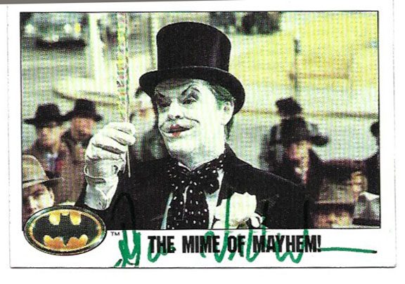 NICHOLSON, Jack (1937-   )  Extremely popular American actor. Three-time Oscar winner. DC collector’s card (1989). “The Mime of Mayhem!” Jack Nicholson as The Joker. Signed in green ink, a vintage signature. In fine condition.......