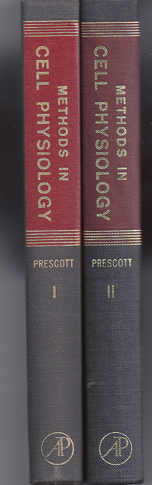 NIRENBERG, Marshall (1927-2010). Jewish, American biochemist and geneticist. Shared the Nobel Prize in 1968 for Physiology or Medicine for breaking the genetic code. He was awarded the National Medal of Science (1964) and the National Medal of Honor (1968) by President Lyndon B. Johnson. Book from his personal library. Methods in Cell Physiology. Academic Press, 1964, two volumes. Vol. 1 has 465 pages with some underlining by Nirenberg. Vol. 2 has 426 pages with some underlining by Nirenberg. Signed “Marshall Nirenberg” on the front free endpaper of volume 1.