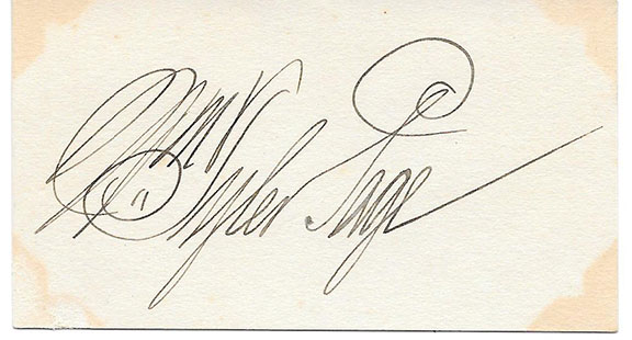 PAGE,  William Tyler  (1868-1942).  A decendent of President Tyler. Page served as a U.S. Capitol page and later an employee of the Capitol Building for 61 years.  He is the author of “America’s Creed” (1918).  A very uncommon signature on a card..........................$95.00