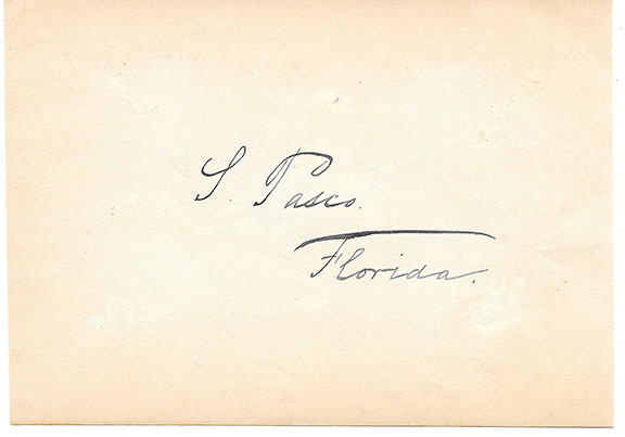 PASCO, Samuel (1834-1917). Private non-commissioned officer for the C.S.A. (1861-1865). Florida Senator (1887-1889). President of the Convention to write the New Constitution for Florida. Isthmian Canal Commissioner. Pasco County, Florida named for him. Choice signature adding "Florida" in his hand. Very scarce signature on a large album page................$225.00 |