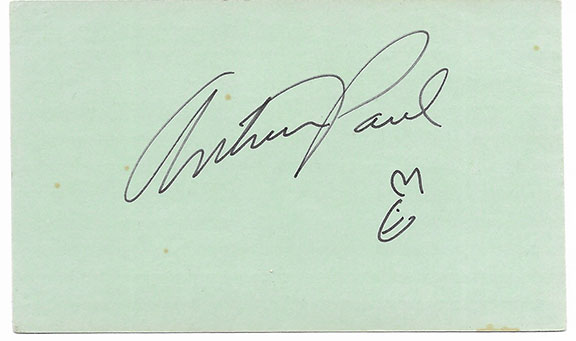PAUL, Art (1925-2018) American graphic designer, illustrator, writer, and composer. Founding art director of Playboy Magazine. As art director he supervised the design of the magazine for 30 years. “Playboy” magazine founder Hugh Hefner, who originally was going to name his magazine “Stag Party” with a stag as its logo, and was told it was a bad idea, was persuaded to use a rabbit instead as they are more frisky and playful. Paul designed the first issue of “Playboy” and used the rabbit for the logo. Very scarce full signature of Art Paul on a green 3”x5” card. He has drawn what was to be the original logo of a “stag” for the “Playboy” magazine. This is the first of this kind we have seen.........$495.00