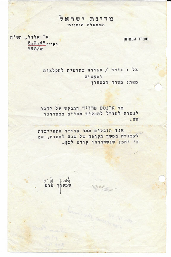 PERES, Shimon (1923- ) His death announced on January 18, 2014 was wide spread around the world but was a hoax. Served twice as Prime Minister of Israel. Peres helped negotiate the 1993 accord with the Palestine Liberation Organization and shared the 1994 Nobel Peace Prize with Yasser Arafat and Yitzak Rabin. T.L.S. in Hebrew with a desirable date 9/5/48 just three months after the State of Israel was proclaimed. Not translated. Usual two file holes otherwise in very good condition ..............$135.00