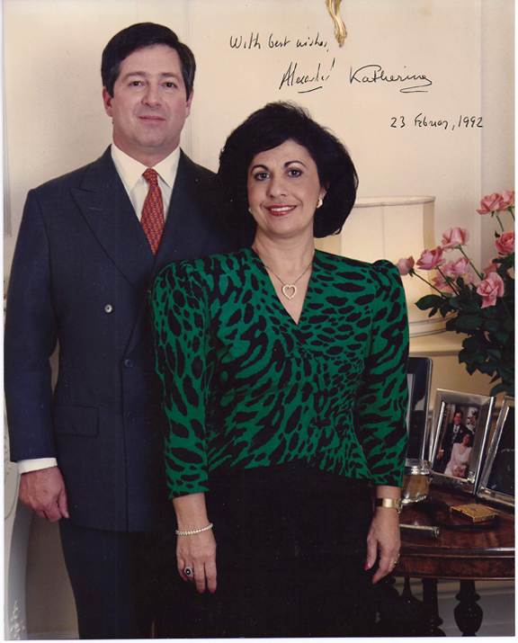 THEIR ROYAL HIGHNESSES CROWN PRINCE ALEXANDER OF YUGOSLAVIA (1945- ) and PRINCESS KATHERINA (1943- ). Alexander is the last apparent heir to the throne of Yugoslavia. He is the only child of former King Peter II. His godparents were George VI and Queen Elizabeth II. Alexander married for the second time in 1985 to a Roman Catholic therefore loosing his place in line of succession to the British throne. Alexander and his wife Katherina first came to Yugoslavia in 1991. They live in the Royal Palace in Dedinje. Katherina was born in Athens and speaks Greek, English, French, Spanish and Serbian. Color photograph, 8”x10” of Alexander and Katherina, three quarter length pose of both smiling. Alexander has a three word sentiment and signed his name. Katherina has signed her name and dated it 23 February 1992. In fine condition............$125.00