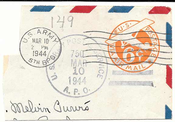 PURVIS, Melvin (1903-1960). Federal Bureau of Investigation Special Agent who is responsible for tracking and gunning down John Dillinger (1933) and Pretty Boy Floyd (1944). Purvis committed suicide in 1960. Fine ink signature addressed to himself on a portion of an Air Mail cover. Postmarked U.S. Army, Mar.10, 1944. Choice signature....................................................$95.00